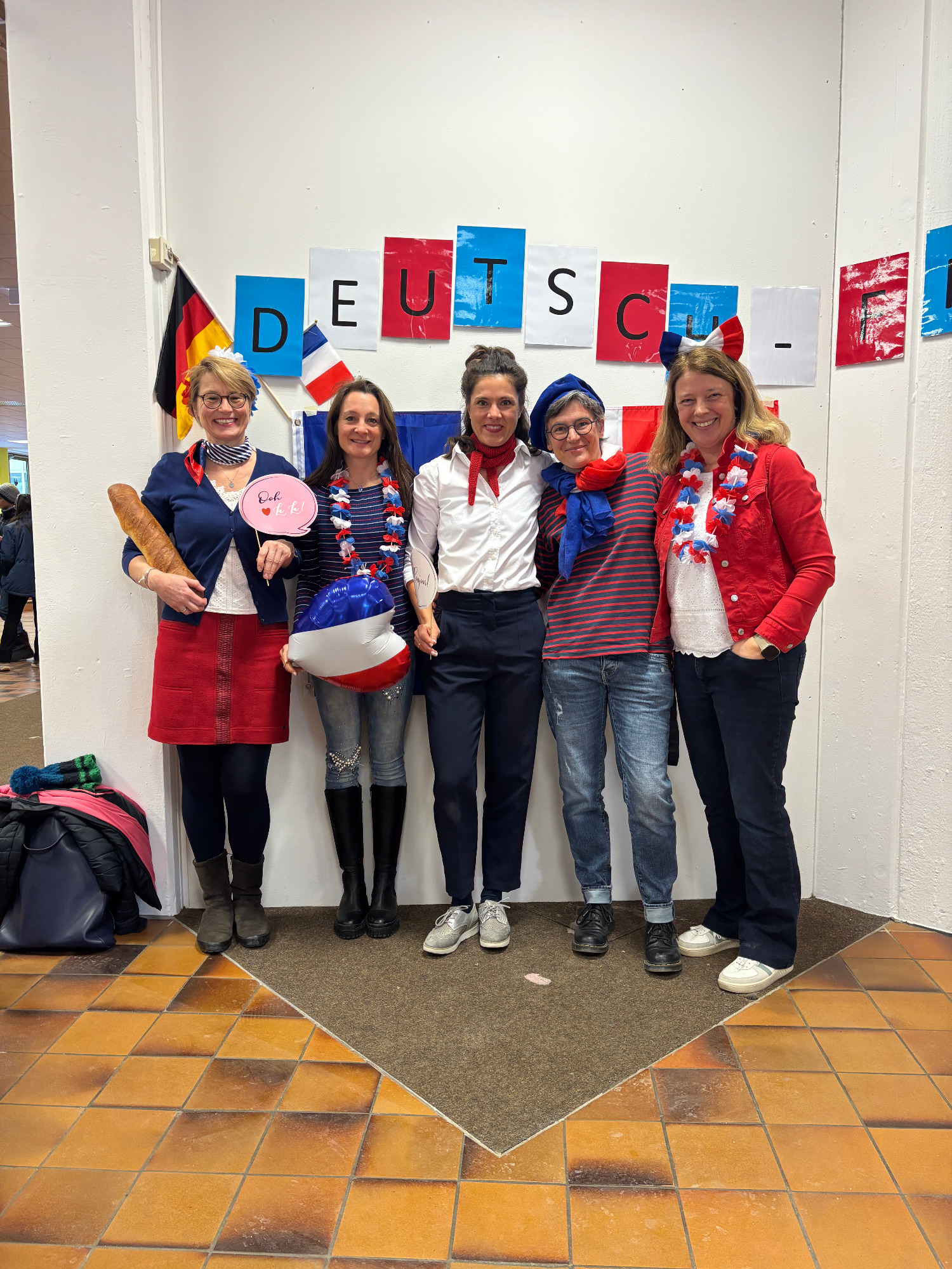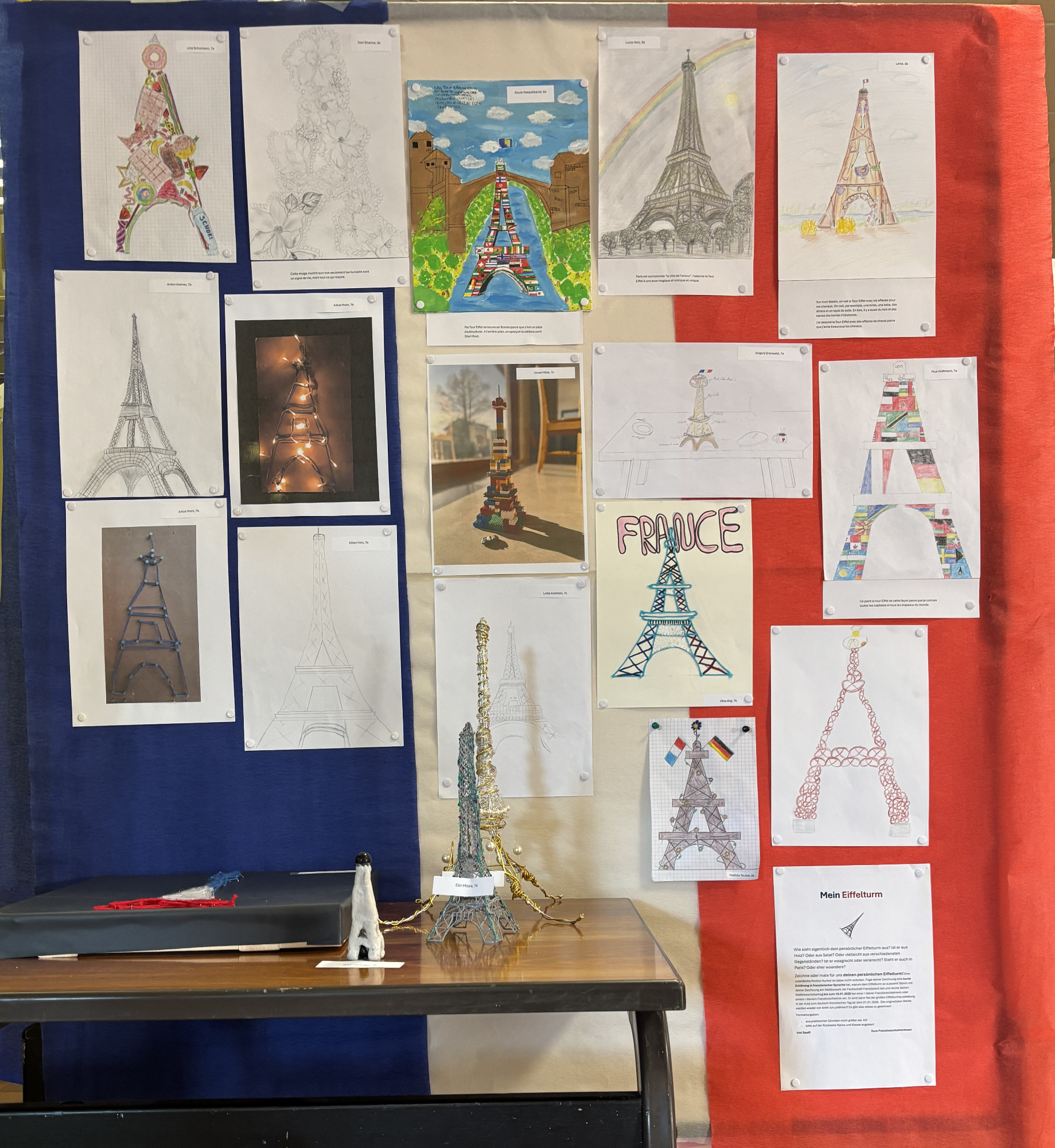 Der diesjährige Deutsch-Französische Tag am Gymnasium Immenstadt war ein fröhliches Highlight zu einem Jubiläum mit doppelter 63, denn zum 63. Mal wurde die Unterzeichnung des Élysée-Vertrags von 1963 gefeiert. Mit Fotobox, französischer Musik, einer Schulhaus-Rallye, kreativem Eiffelturm-Wettbewerb und französischen Leckereien herrschte in den Pausen buntes Treiben. Beim Verkauf kamen rund 300 Euro für unser Patenkind Penda aus dem Senegal zusammen.