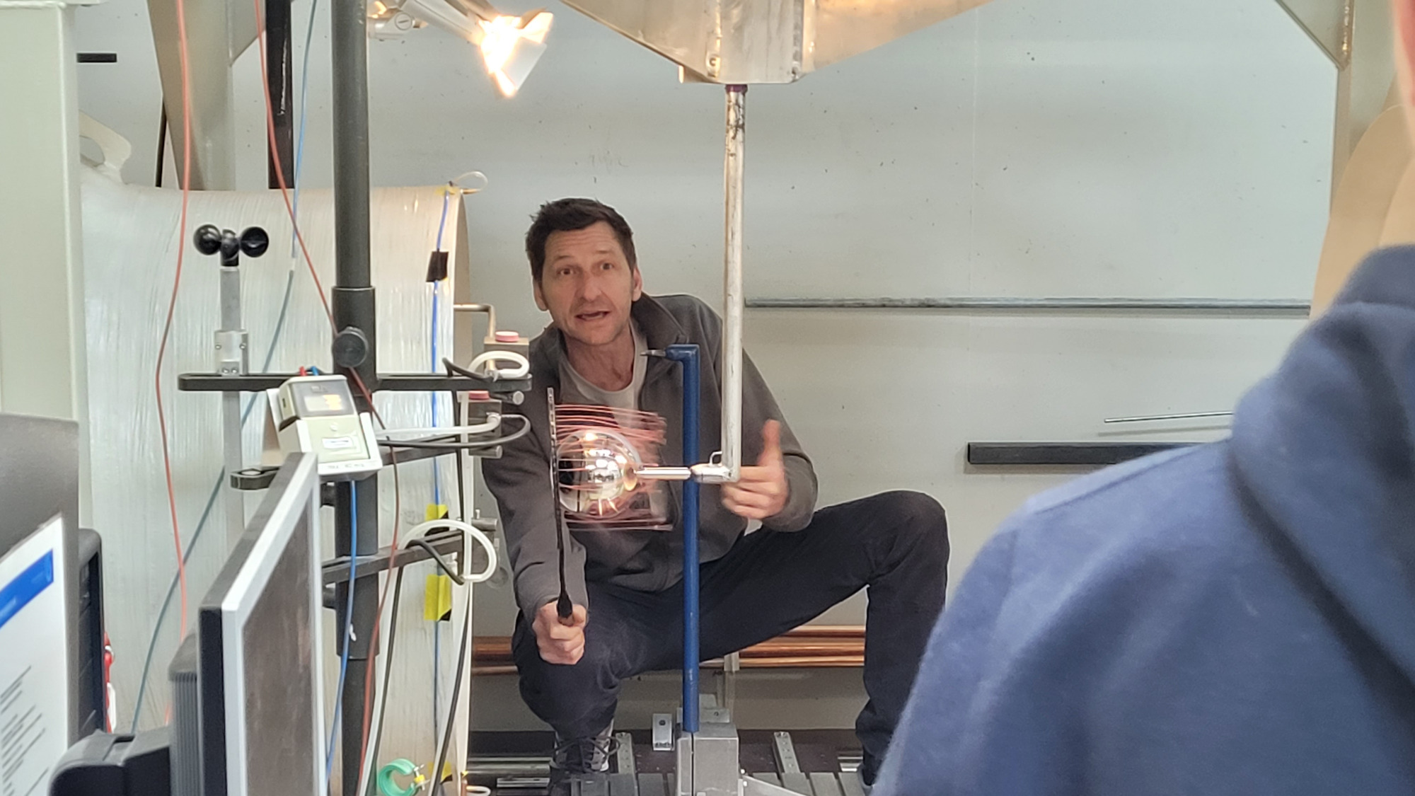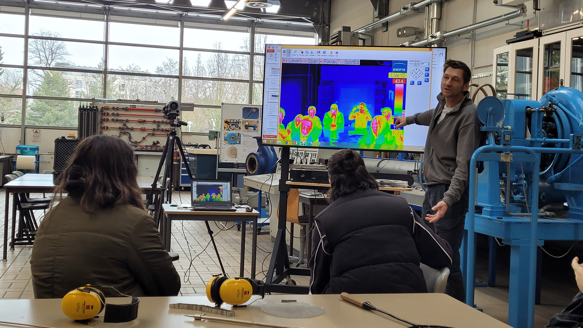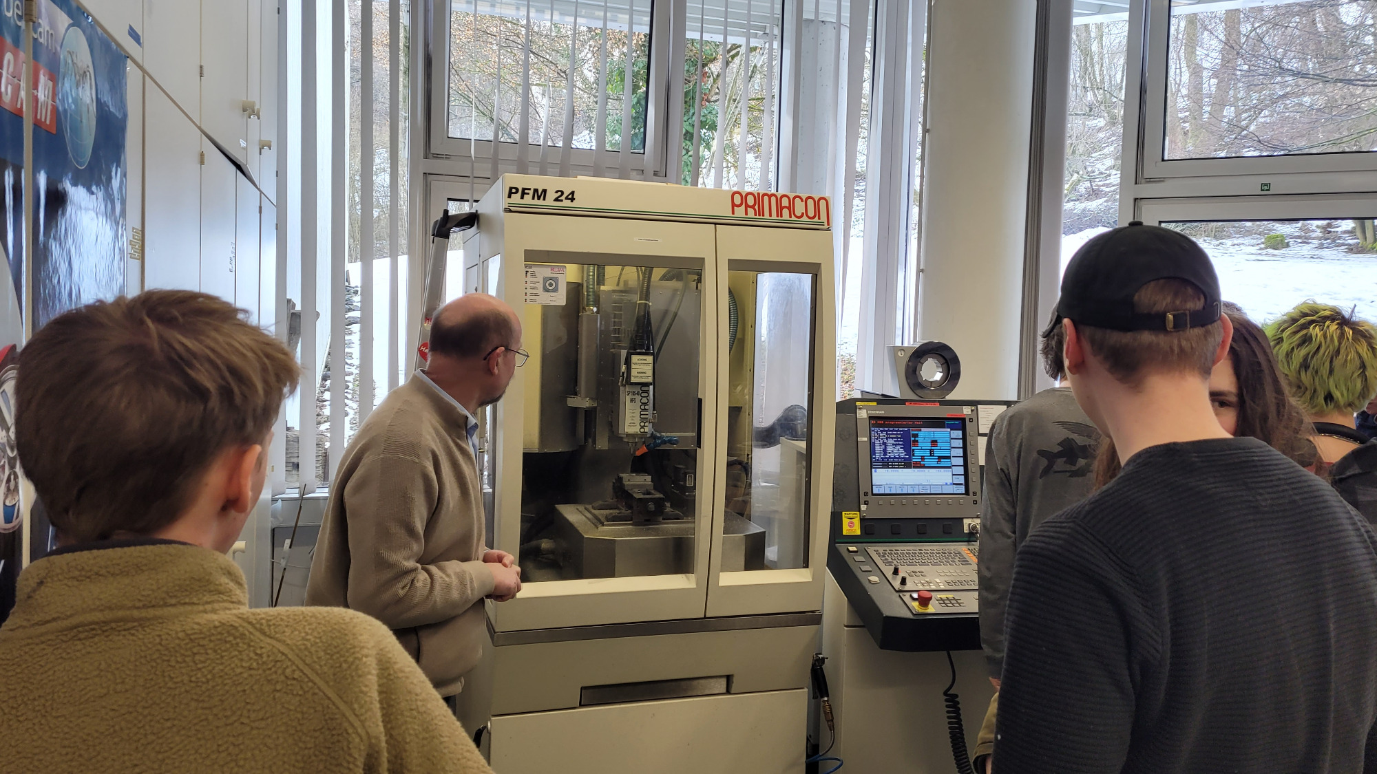 Daneben besichtigten sie weitere Labore: Im Glockenlabor erlebten sie einen völlig schalldichten Raum. Im Mikrotechniklabor frästen sie eine Turbine mit einem Durchmesser von 1 mm. Im Windkanallabor sahen sie, wie Luft eine Kugel umströmt und wie ein Wärmebild von ihnen entsteht.