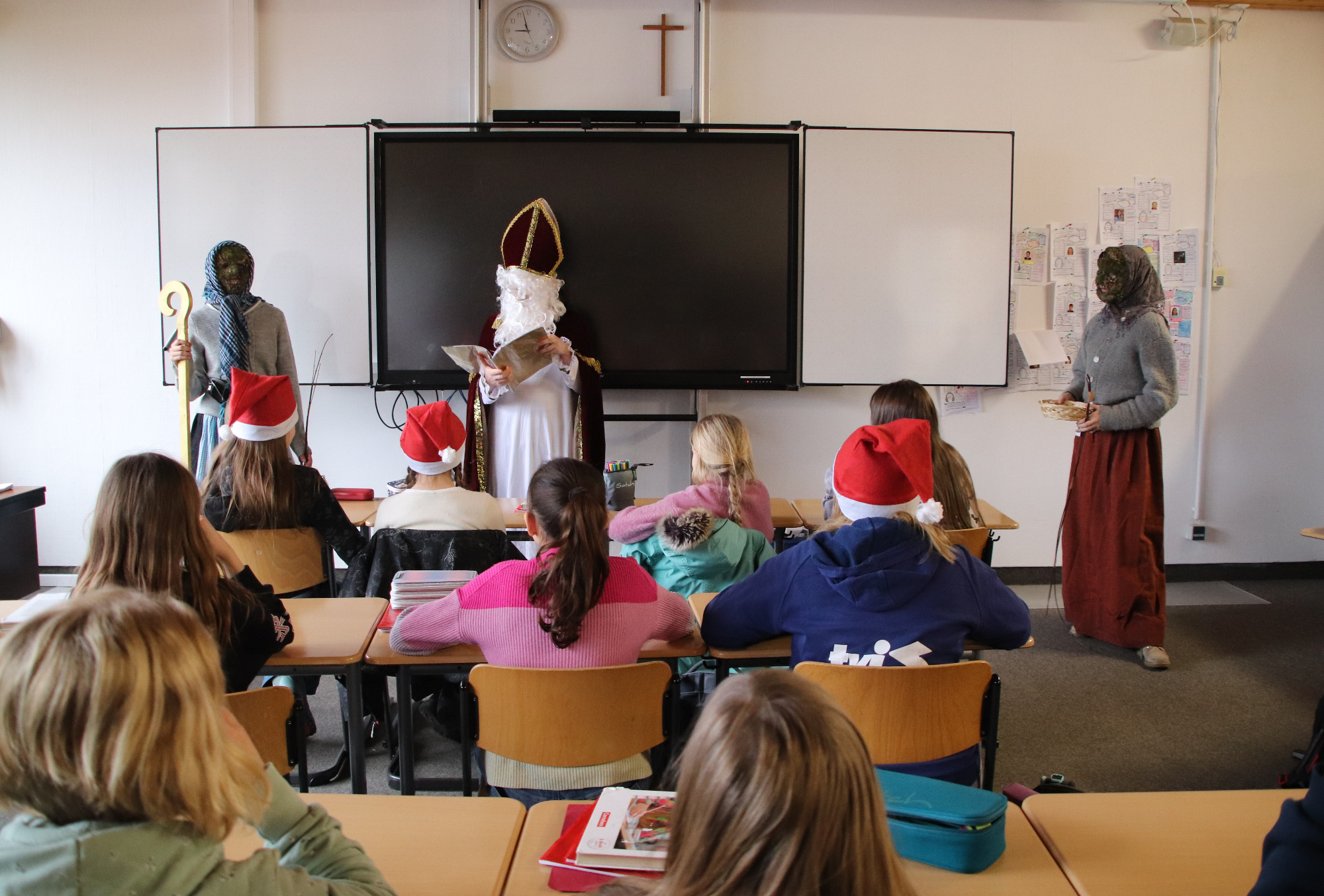 Die Q12/13 und die SMV hatten fleißig organisiert und so ging in den ersten beiden Stunden der Nikolaus, unterstützt von Klausen, Bärbele und Engeln, wieder durch die Klassen und verteilte Lob, Tadel und natürlich Süßes.