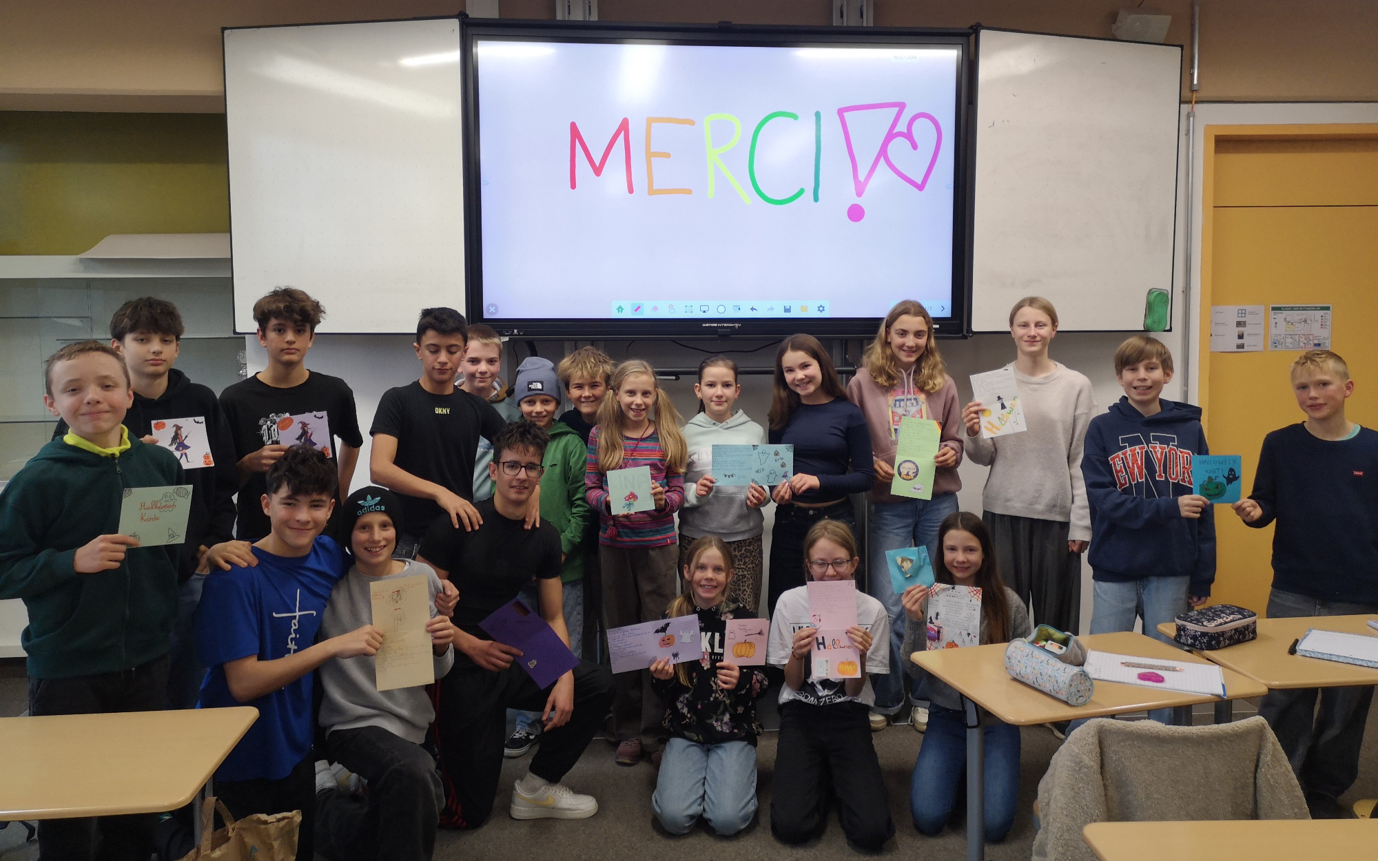Seitdem schreiben die Schülerinnen und Schüler unserer 7abc Französischgruppe den Schülerinnen und Schülern der 5ème des Collège Charles de Gaulle Briefe auf Französisch und erhalten wiederum deren Antworten auf Deutsch. Und auch die 9bc des sprachlichen Zweiges tauscht sich so mit einer 4ème in Ploemeur aus.