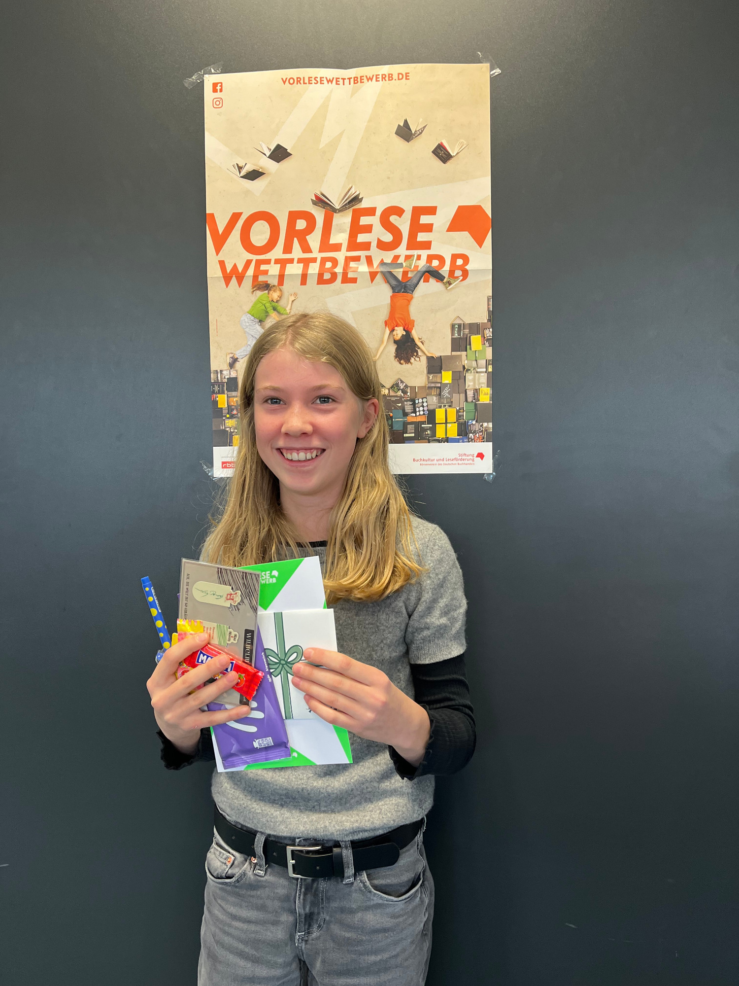 Nach dem letzten Vortrag und einer eingehenden Beratung der Jury fiel die Entscheidung: Johanne Vollmer aus der 6c setzte sich mit zwei beeindruckend authentisch vorgetragenen Texten klar an die Spitze. Es folgten Antonia Scola aus der 6b und Niklas Kirchbihler aus der 6c, deren Lesetechnik, Ausdruckskraft und Textverständnis ebenfalls herausragend waren.