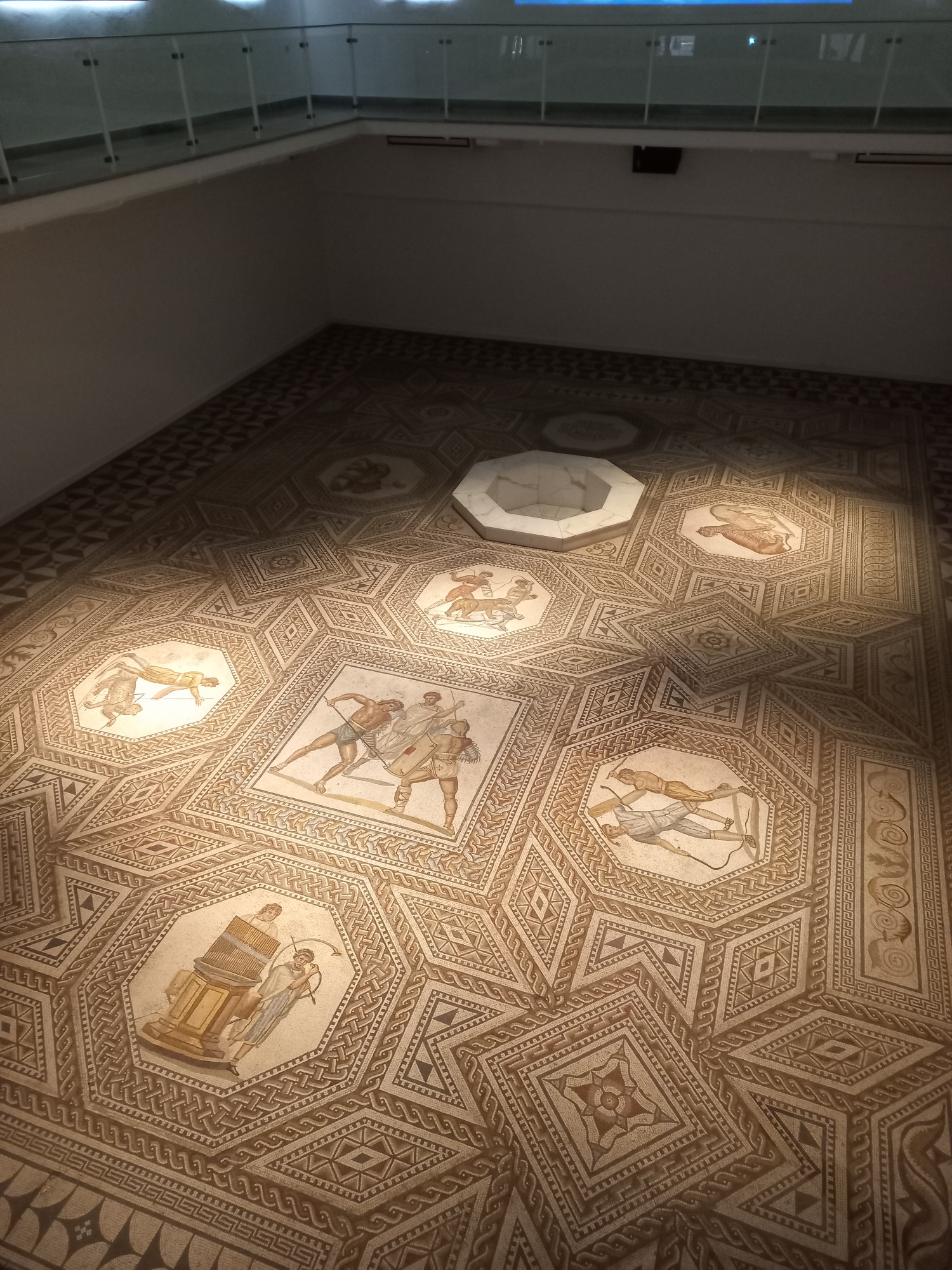 So besichtigten die Schülerinnen und Schüler die „Klassiker“ in Trier und erkundeten römische Funde im benachbarten Saarland, wo sie unter anderem die Rekonstruktion einer römischen Villa und den berühmten Mosaikboden in Nennig bestaunten. Eine Besonderheit dieses Jahr war die Sonderausstellung zu Marc Aurel.