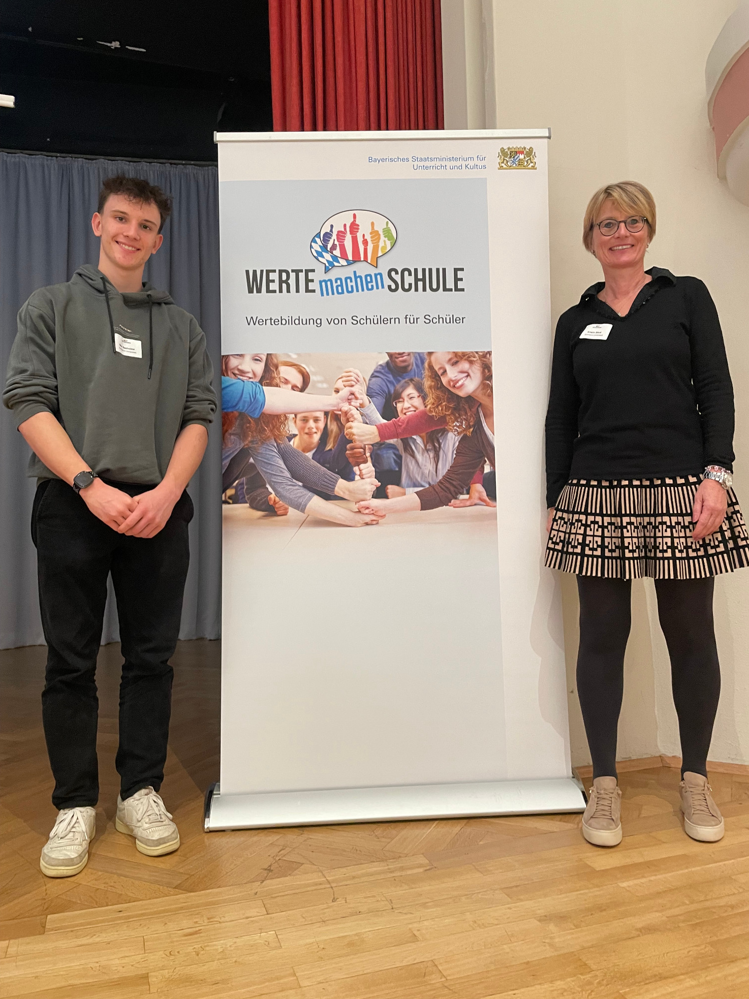Auf Einladung des Bayerischen Staatsministeriums für Unterricht und Kultus durfte unser Schülersprecher Max Seeholzer als Wertebotschafter in der Initiative “Werte machen Schule“ mit Mittelstufenbetreuerin Kristin Böck Anfang Oktober nach München fahren.